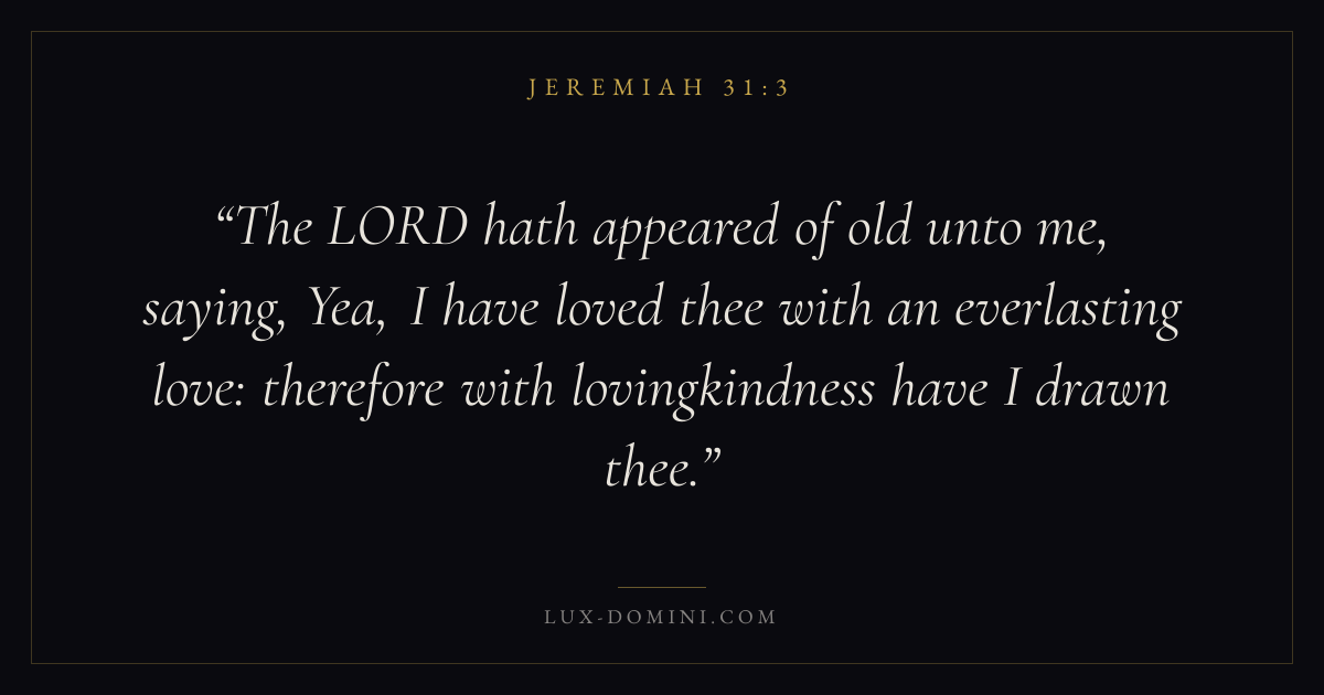 The LORD hath appeared of old unto me, saying, Yea, I have loved thee with an everlasting love: therefore with lovingkindness have I drawn thee.