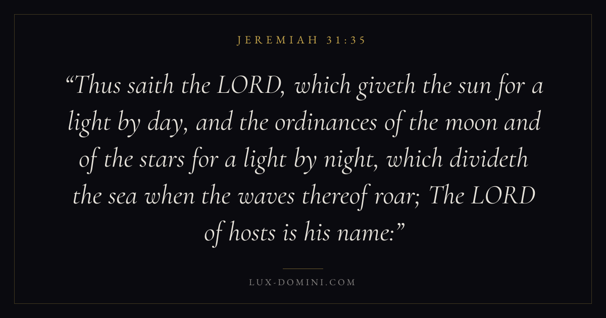 Thus saith the LORD, which giveth the sun for a light by day, and the ordinances of the moon and of the stars for a light by night, which divideth the sea when the waves thereof roar; The LORD of hosts is his name: