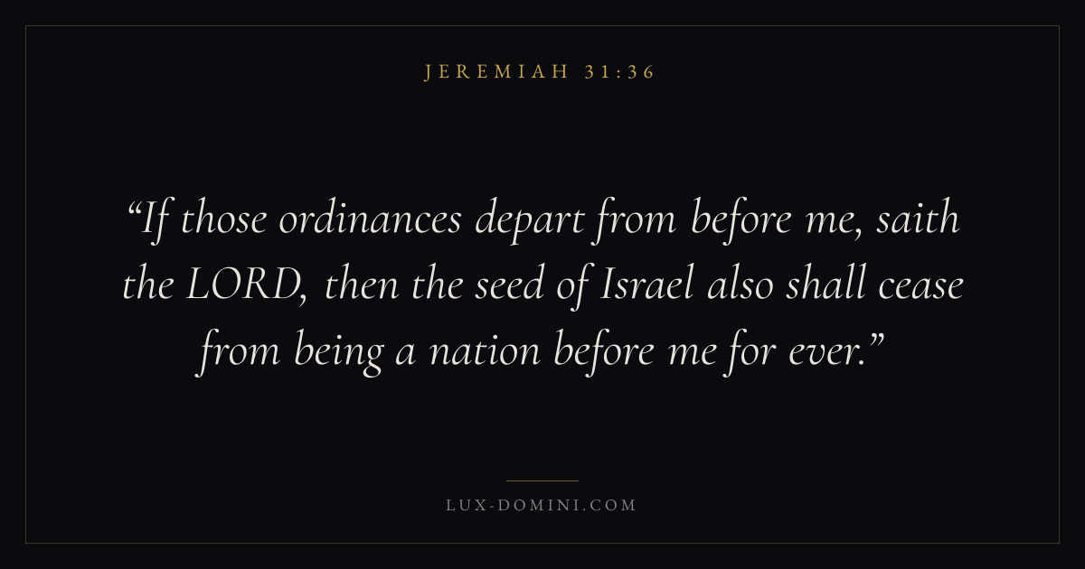 If those ordinances depart from before me, saith the LORD, then the seed of Israel also shall cease from being a nation before me for ever.