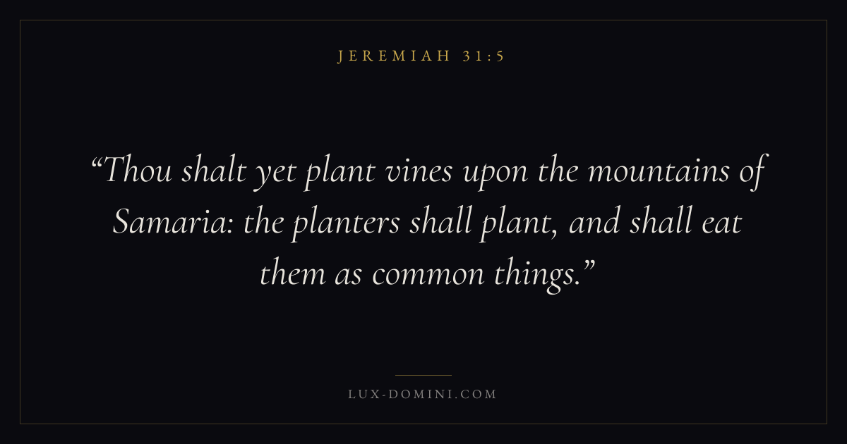 Thou shalt yet plant vines upon the mountains of Samaria: the planters shall plant, and shall eat them as common things.