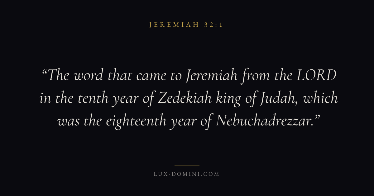The word that came to Jeremiah from the LORD in the tenth year of Zedekiah king of Judah, which was the eighteenth year of Nebuchadrezzar.
