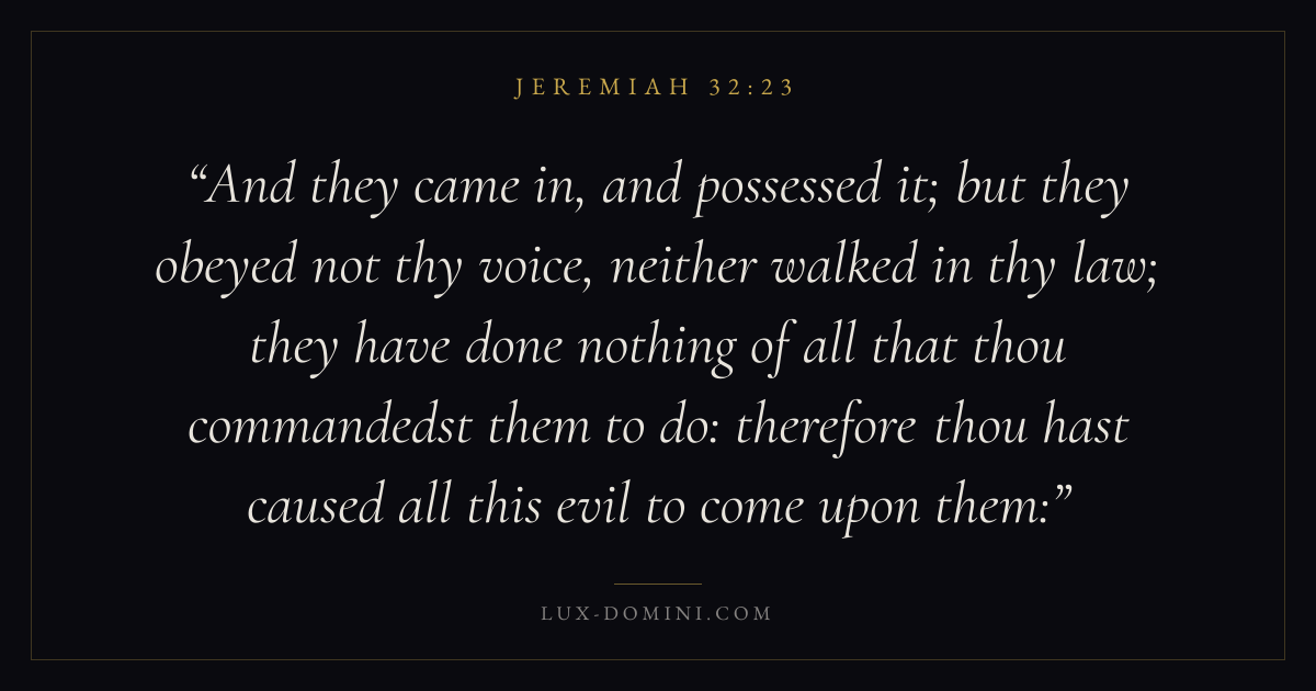 And they came in, and possessed it; but they obeyed not thy voice, neither walked in thy law; they have done nothing of all that thou commandedst them to do: therefore thou hast caused all this evil to come upon them: