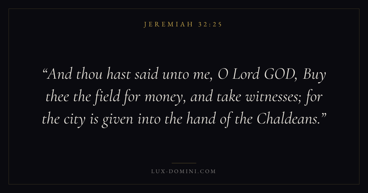 And thou hast said unto me, O Lord GOD, Buy thee the field for money, and take witnesses; for the city is given into the hand of the Chaldeans.