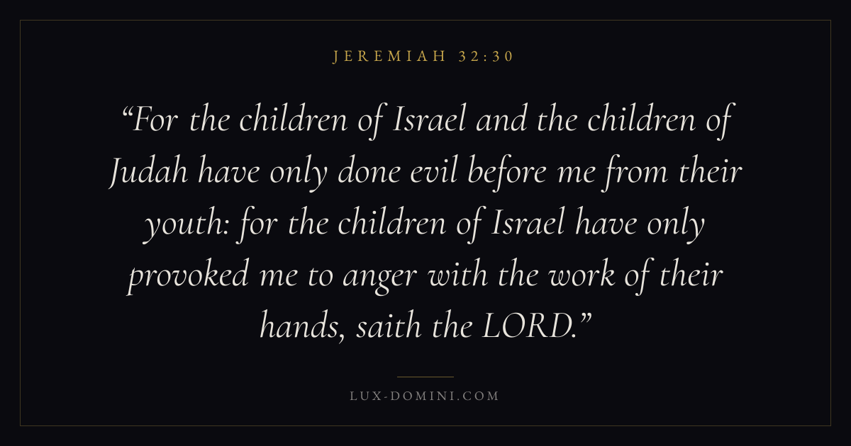 For the children of Israel and the children of Judah have only done evil before me from their youth: for the children of Israel have only provoked me to anger with the work of their hands, saith the LORD.