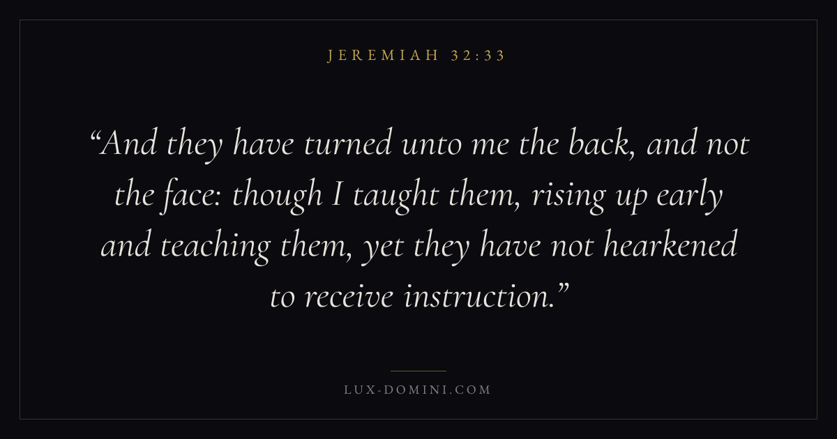 And they have turned unto me the back, and not the face: though I taught them, rising up early and teaching them, yet they have not hearkened to receive instruction.
