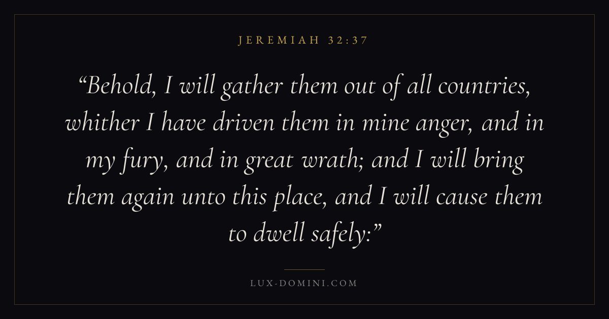 Behold, I will gather them out of all countries, whither I have driven them in mine anger, and in my fury, and in great wrath; and I will bring them again unto this place, and I will cause them to dwell safely: