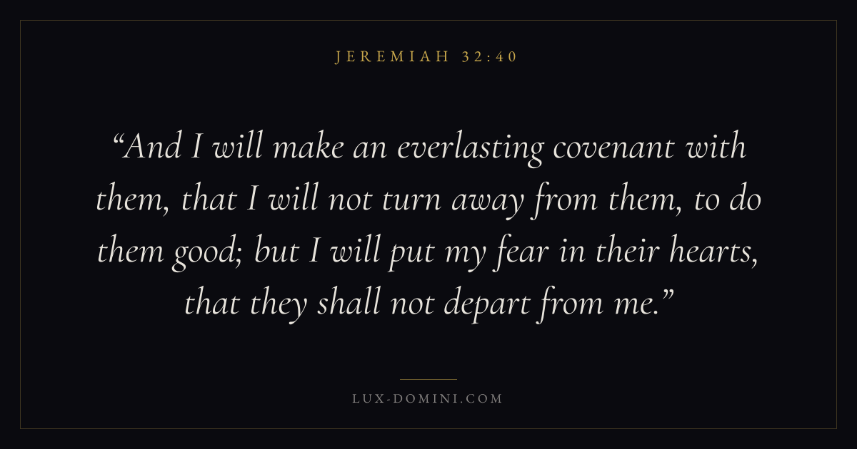 And I will make an everlasting covenant with them, that I will not turn away from them, to do them good; but I will put my fear in their hearts, that they shall not depart from me.