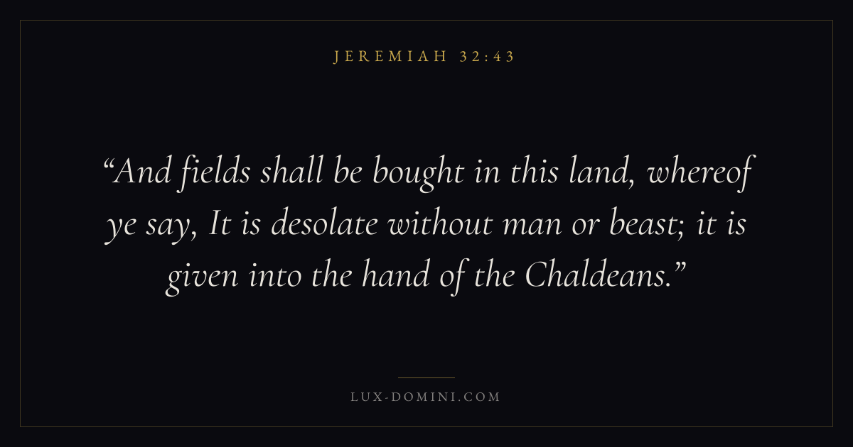 And fields shall be bought in this land, whereof ye say, It is desolate without man or beast; it is given into the hand of the Chaldeans.