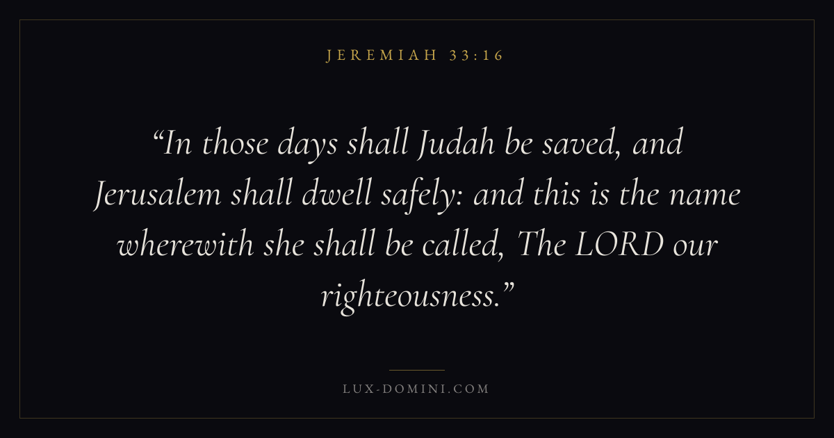 In those days shall Judah be saved, and Jerusalem shall dwell safely: and this is the name wherewith she shall be called, The LORD our righteousness.