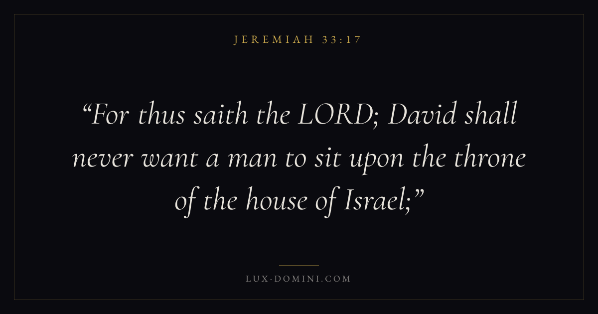 For thus saith the LORD; David shall never want a man to sit upon the throne of the house of Israel;