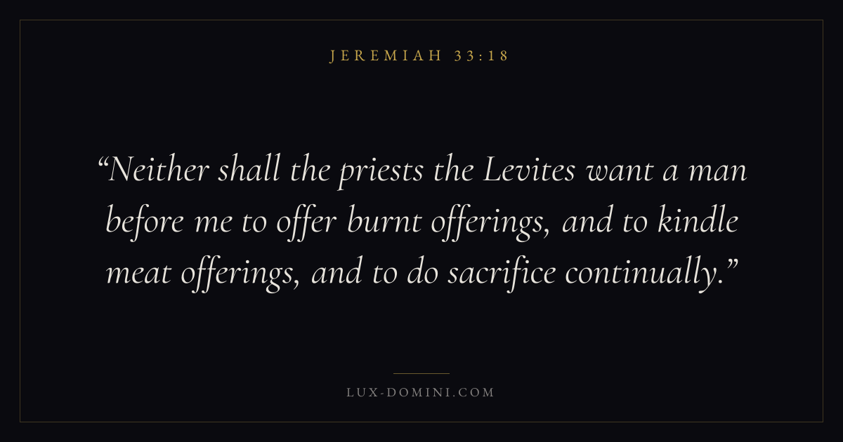 Neither shall the priests the Levites want a man before me to offer burnt offerings, and to kindle meat offerings, and to do sacrifice continually.