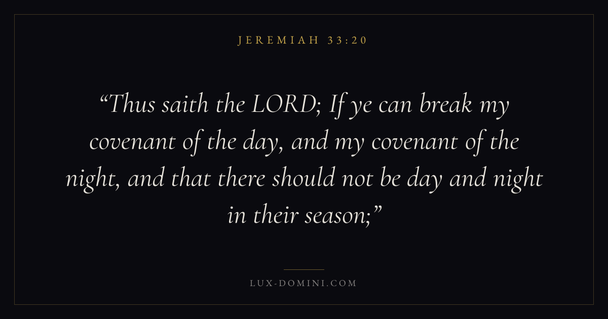 Thus saith the LORD; If ye can break my covenant of the day, and my covenant of the night, and that there should not be day and night in their season;