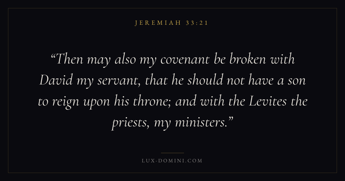 Then may also my covenant be broken with David my servant, that he should not have a son to reign upon his throne; and with the Levites the priests, my ministers.