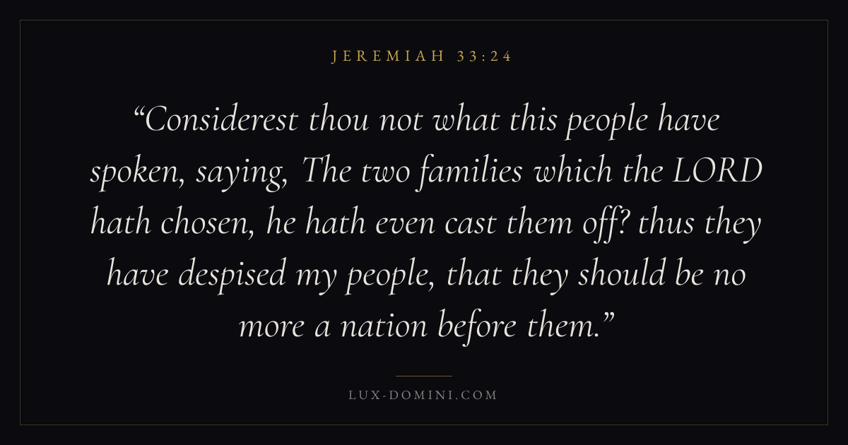 Considerest thou not what this people have spoken, saying, The two families which the LORD hath chosen, he hath even cast them off? thus they have despised my people, that they should be no more a nation before them.