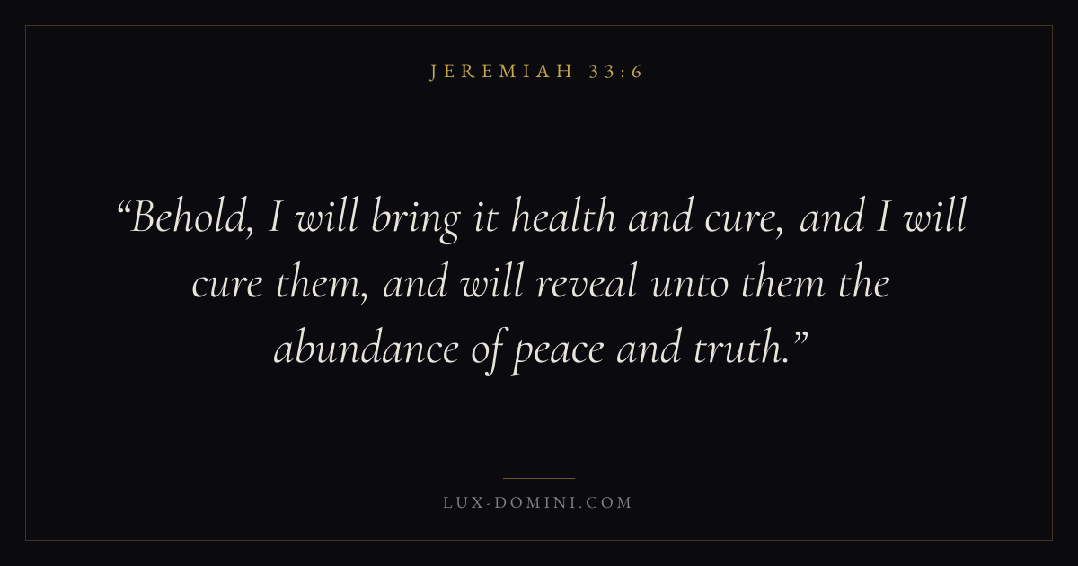 Behold, I will bring it health and cure, and I will cure them, and will reveal unto them the abundance of peace and truth.