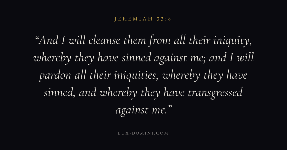 And I will cleanse them from all their iniquity, whereby they have sinned against me; and I will pardon all their iniquities, whereby they have sinned, and whereby they have transgressed against me.