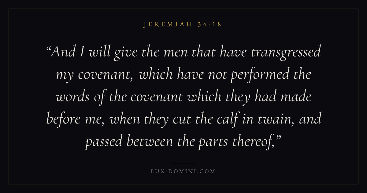 And I will give the men that have transgressed my covenant, which have not performed the words of the covenant which they had made before me, when they cut the calf in twain, and passed between the parts thereof,