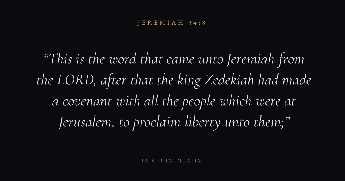 This is the word that came unto Jeremiah from the LORD, after that the king Zedekiah had made a covenant with all the people which were at Jerusalem, to proclaim liberty unto them;