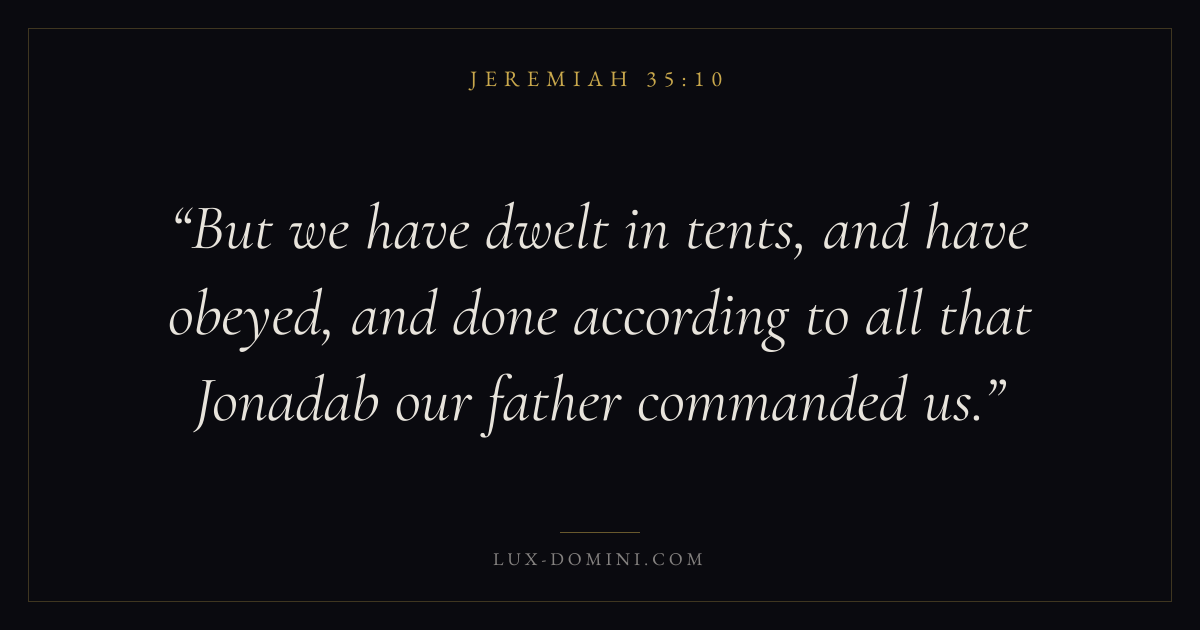 But we have dwelt in tents, and have obeyed, and done according to all that Jonadab our father commanded us.