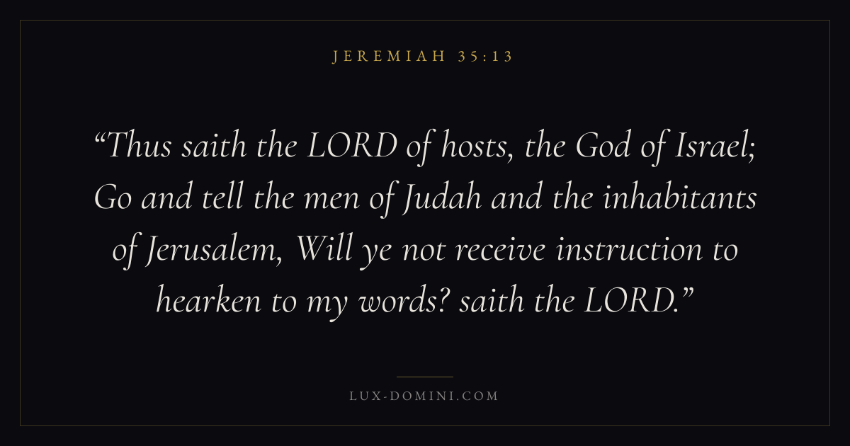Thus saith the LORD of hosts, the God of Israel; Go and tell the men of Judah and the inhabitants of Jerusalem, Will ye not receive instruction to hearken to my words? saith the LORD.