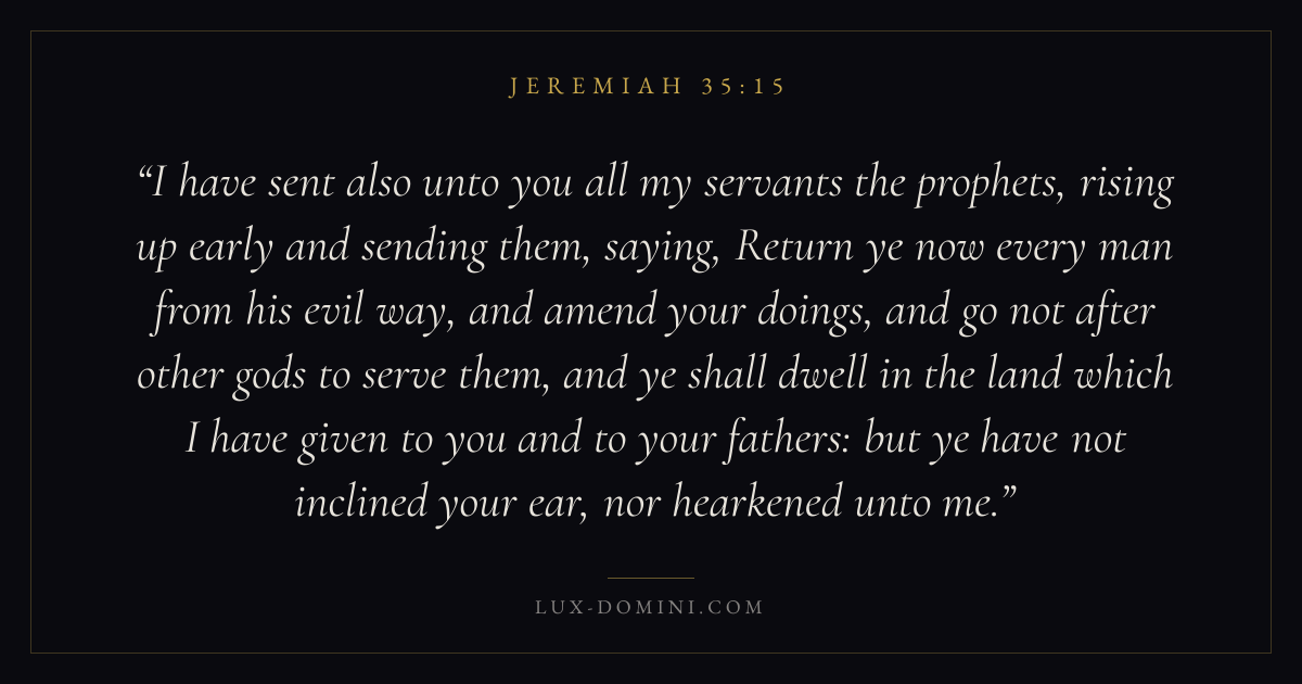 I have sent also unto you all my servants the prophets, rising up early and sending them, saying, Return ye now every man from his evil way, and amend your doings, and go not after other gods to serve them, and ye shall dwell in the land which I have given to you and to your fathers: but ye have not inclined your ear, nor hearkened unto me.