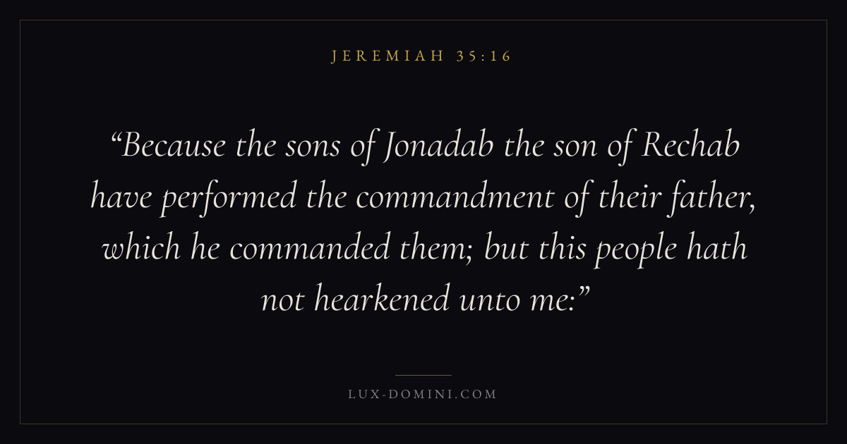 Because the sons of Jonadab the son of Rechab have performed the commandment of their father, which he commanded them; but this people hath not hearkened unto me: