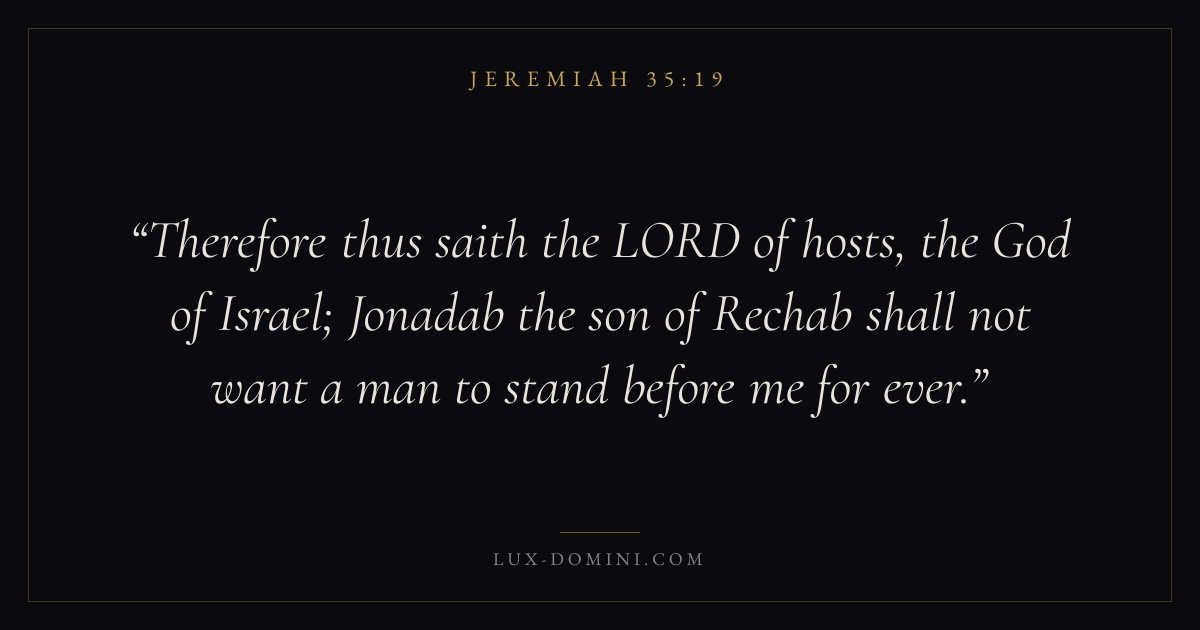 Therefore thus saith the LORD of hosts, the God of Israel; Jonadab the son of Rechab shall not want a man to stand before me for ever.