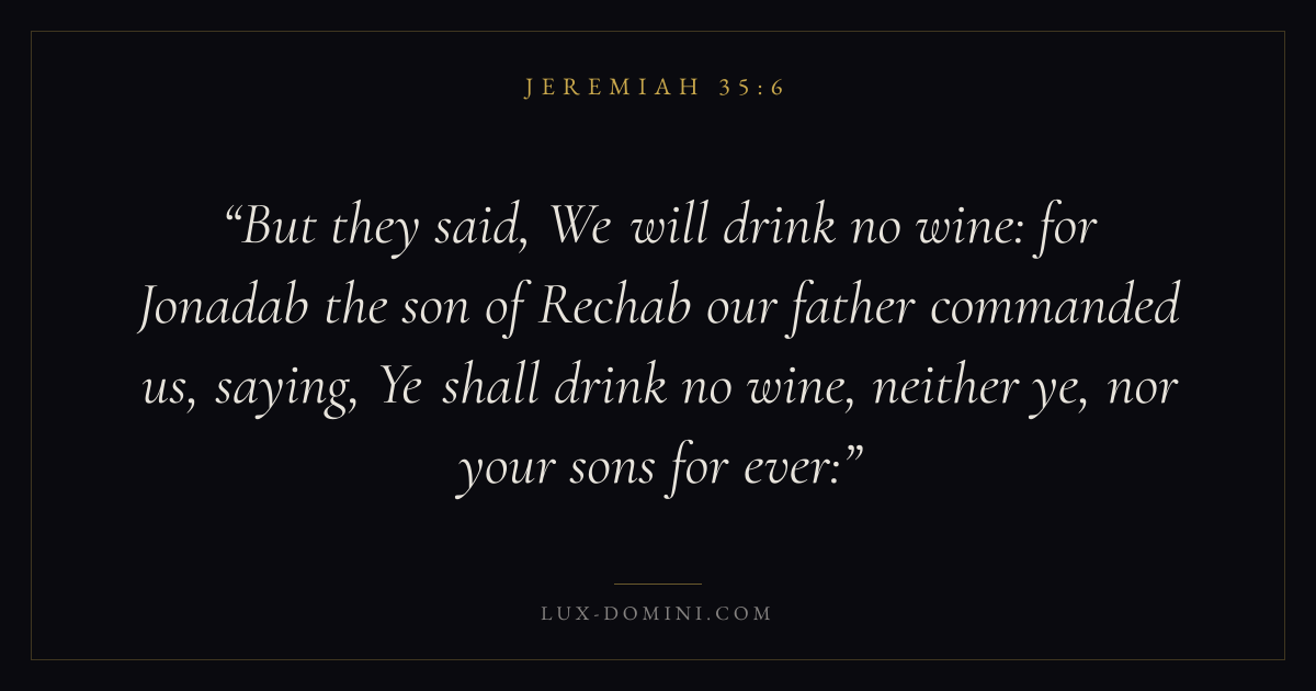 But they said, We will drink no wine: for Jonadab the son of Rechab our father commanded us, saying, Ye shall drink no wine, neither ye, nor your sons for ever: