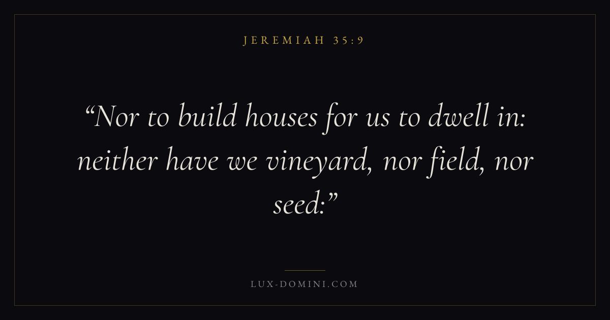 Nor to build houses for us to dwell in: neither have we vineyard, nor field, nor seed: