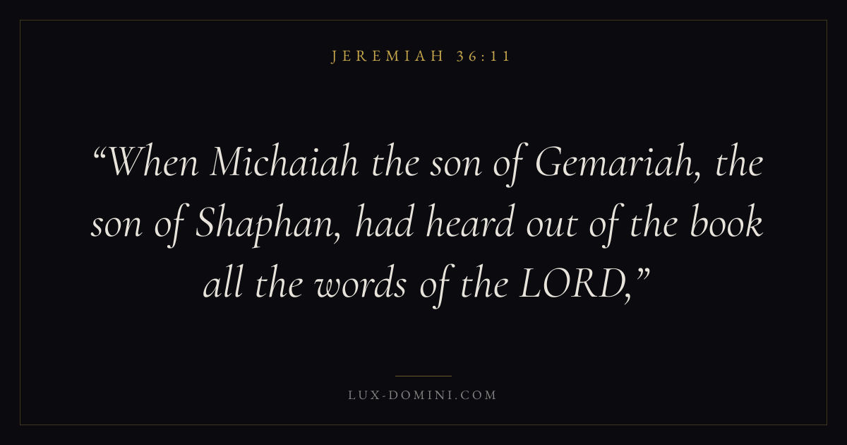 When Michaiah the son of Gemariah, the son of Shaphan, had heard out of the book all the words of the LORD,