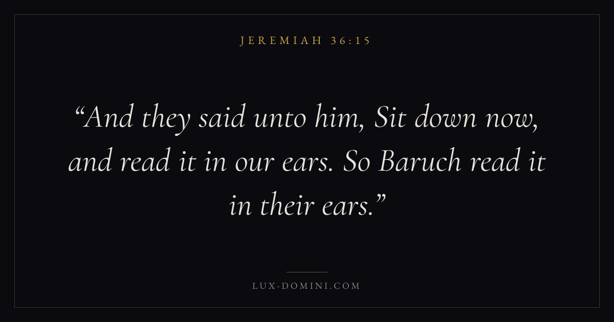 And they said unto him, Sit down now, and read it in our ears. So Baruch read it in their ears.