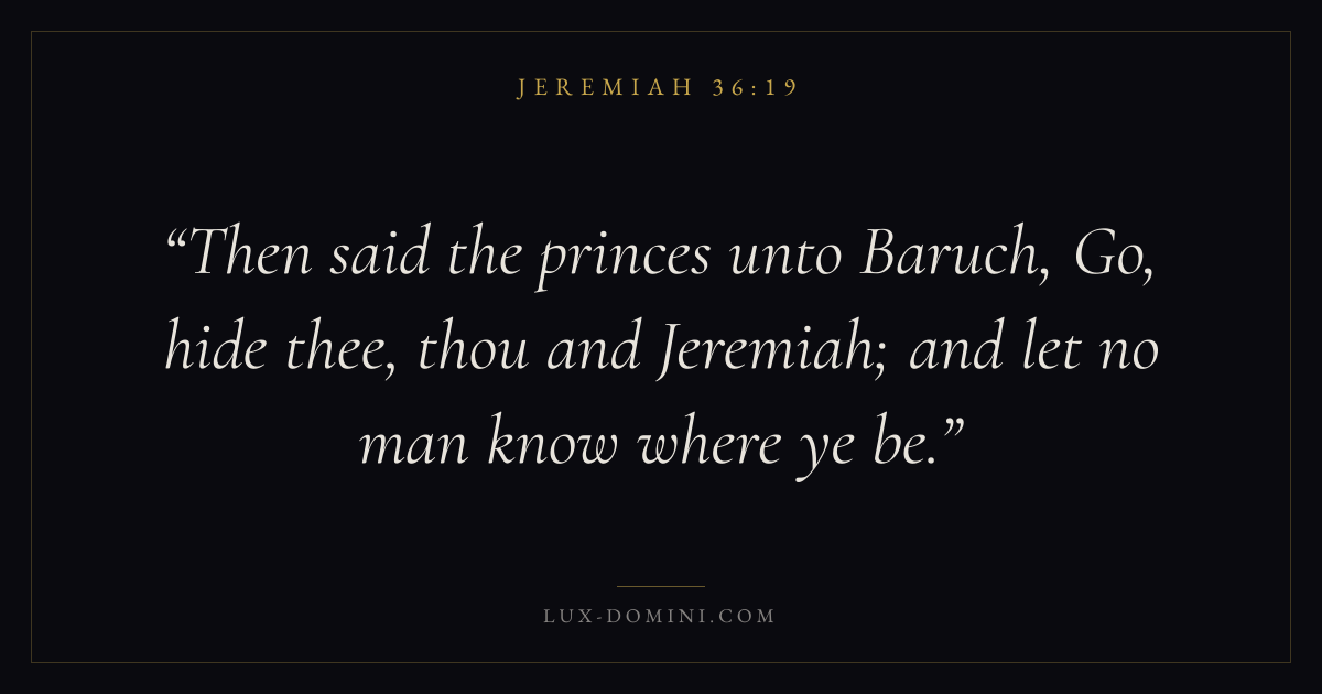 Then said the princes unto Baruch, Go, hide thee, thou and Jeremiah; and let no man know where ye be.