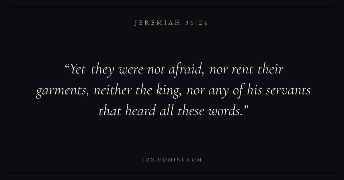 Yet they were not afraid, nor rent their garments, neither the king, nor any of his servants that heard all these words.