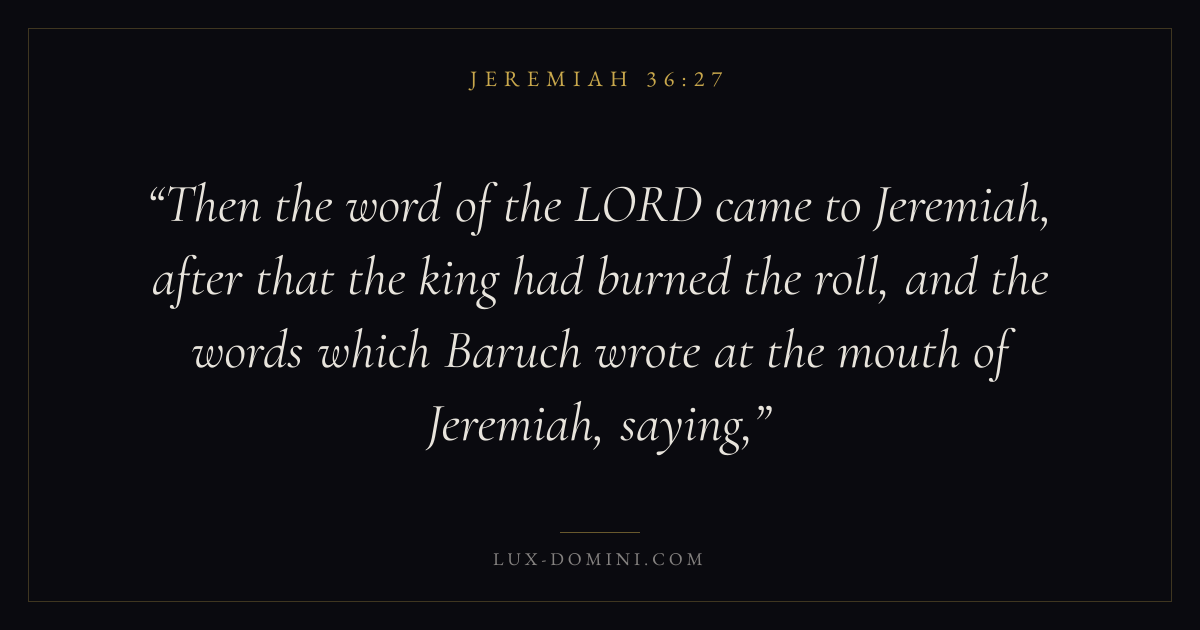 Then the word of the LORD came to Jeremiah, after that the king had burned the roll, and the words which Baruch wrote at the mouth of Jeremiah, saying,