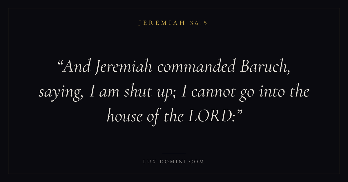 And Jeremiah commanded Baruch, saying, I am shut up; I cannot go into the house of the LORD: