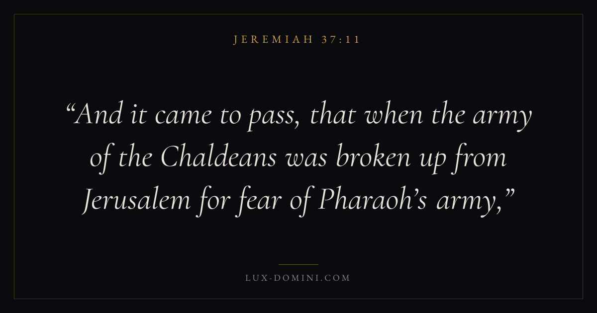 And it came to pass, that when the army of the Chaldeans was broken up from Jerusalem for fear of Pharaoh’s army,