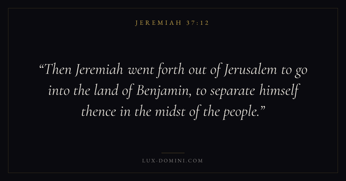 Then Jeremiah went forth out of Jerusalem to go into the land of Benjamin, to separate himself thence in the midst of the people.