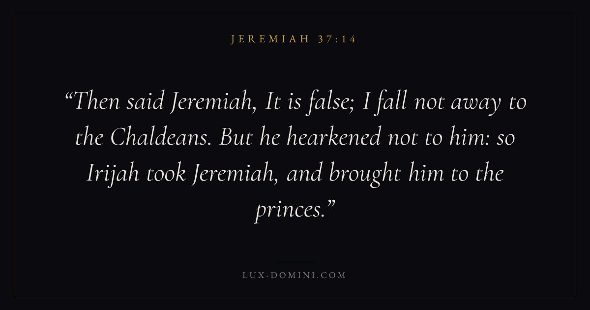 Then said Jeremiah, It is false; I fall not away to the Chaldeans. But he hearkened not to him: so Irijah took Jeremiah, and brought him to the princes.