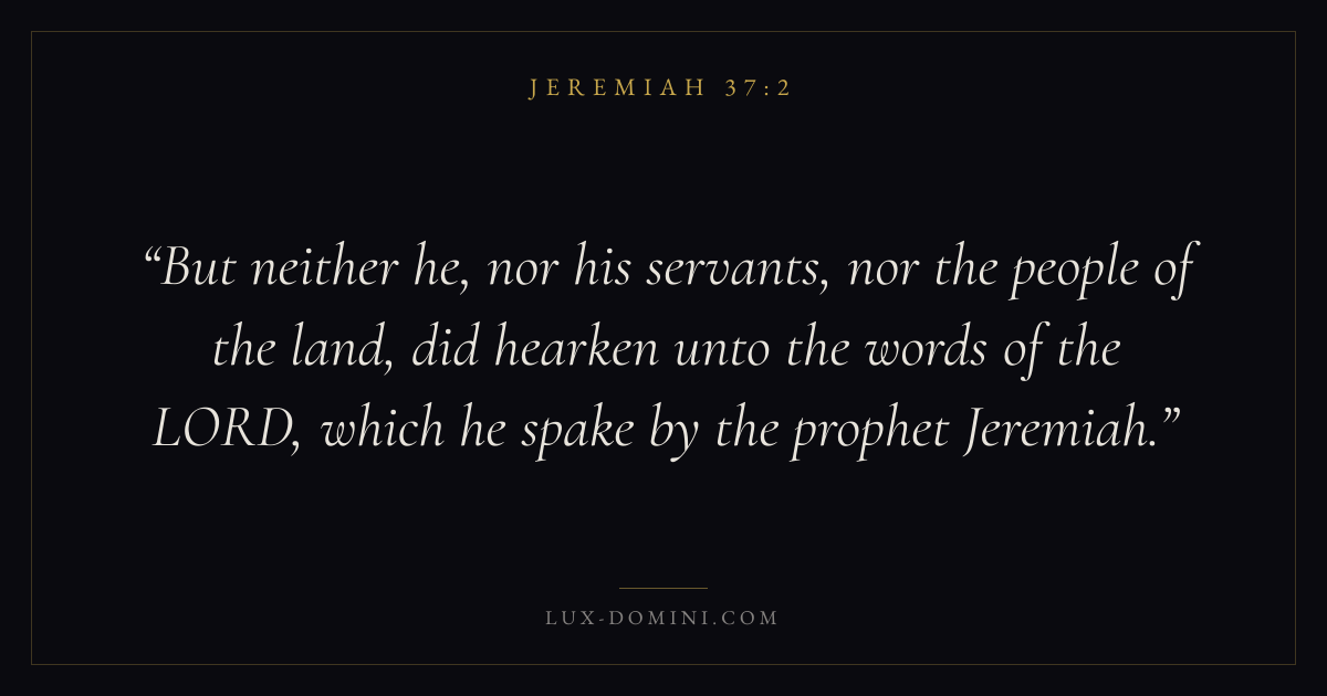 But neither he, nor his servants, nor the people of the land, did hearken unto the words of the LORD, which he spake by the prophet Jeremiah.
