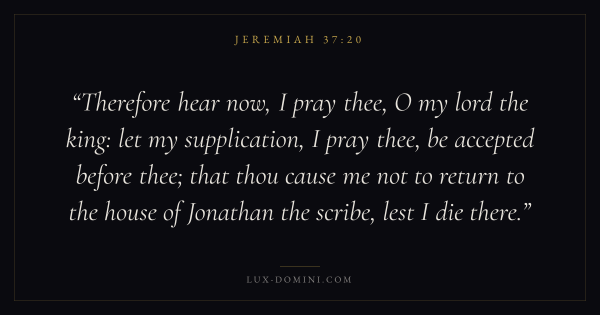 Therefore hear now, I pray thee, O my lord the king: let my supplication, I pray thee, be accepted before thee; that thou cause me not to return to the house of Jonathan the scribe, lest I die there.