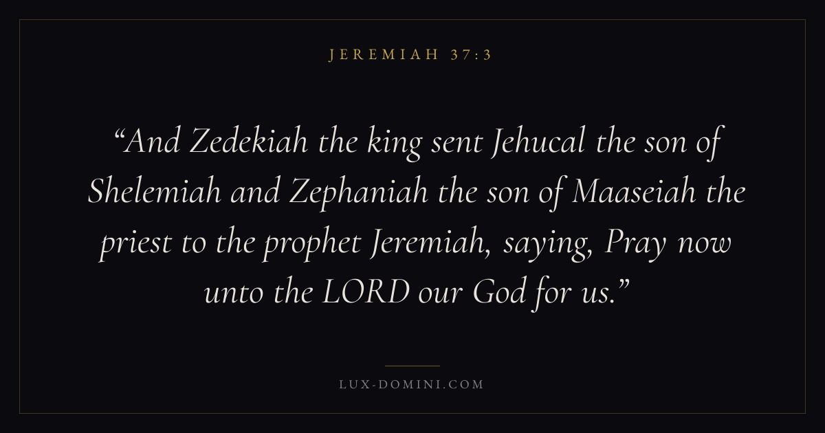 And Zedekiah the king sent Jehucal the son of Shelemiah and Zephaniah the son of Maaseiah the priest to the prophet Jeremiah, saying, Pray now unto the LORD our God for us.