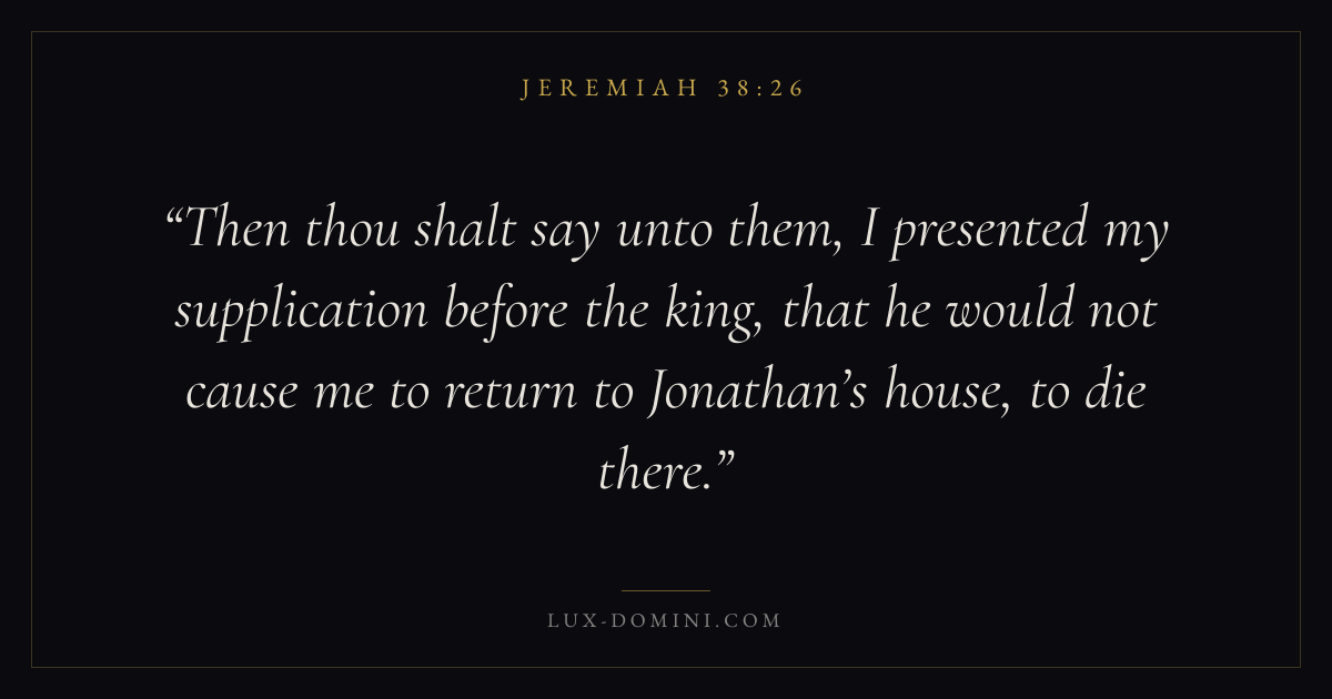 Then thou shalt say unto them, I presented my supplication before the king, that he would not cause me to return to Jonathan’s house, to die there.