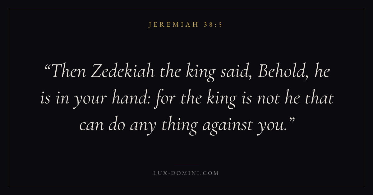 Then Zedekiah the king said, Behold, he is in your hand: for the king is not he that can do any thing against you.