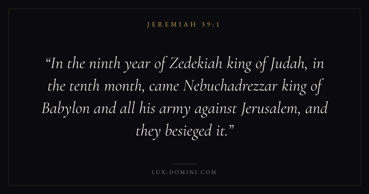 In the ninth year of Zedekiah king of Judah, in the tenth month, came Nebuchadrezzar king of Babylon and all his army against Jerusalem, and they besieged it.