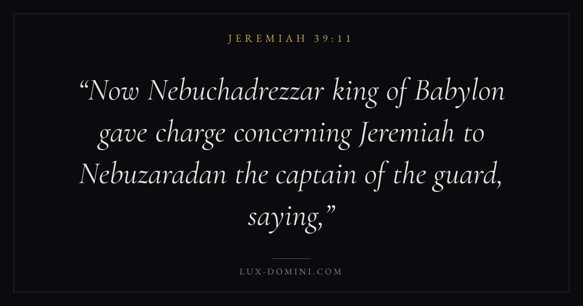 Now Nebuchadrezzar king of Babylon gave charge concerning Jeremiah to Nebuzaradan the captain of the guard, saying,