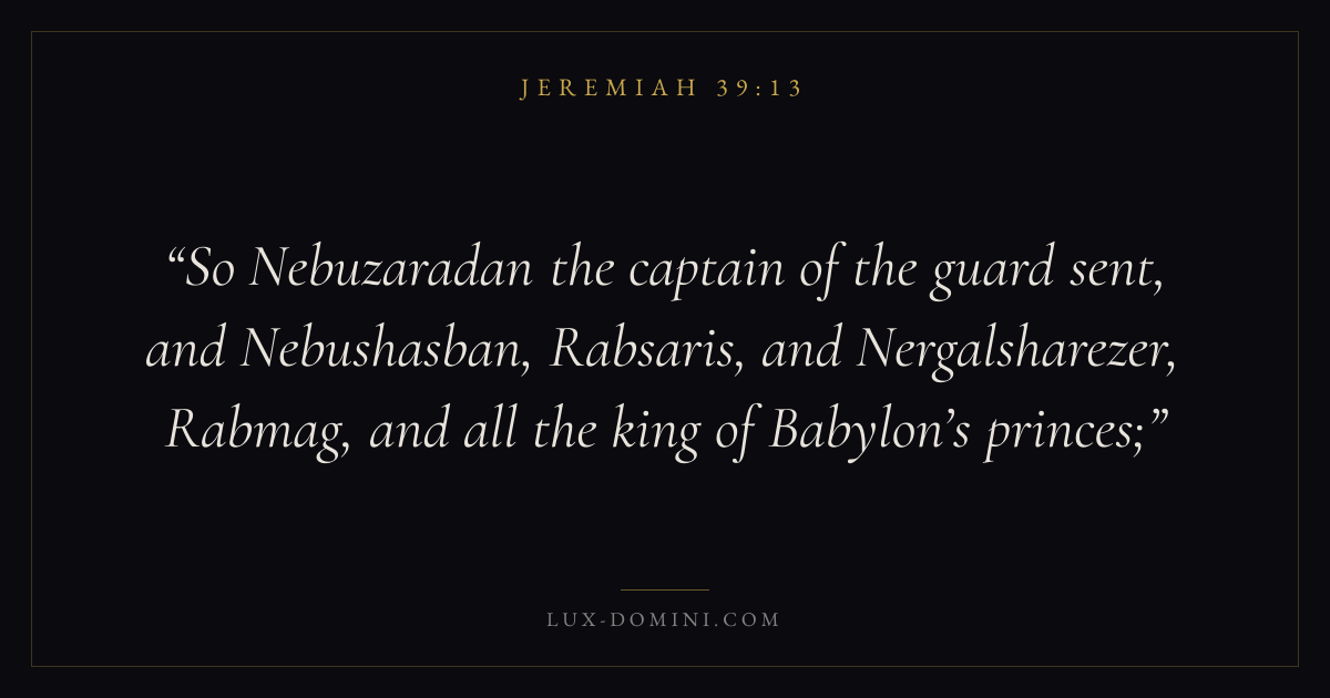 So Nebuzaradan the captain of the guard sent, and Nebushasban, Rabsaris, and Nergalsharezer, Rabmag, and all the king of Babylon’s princes;