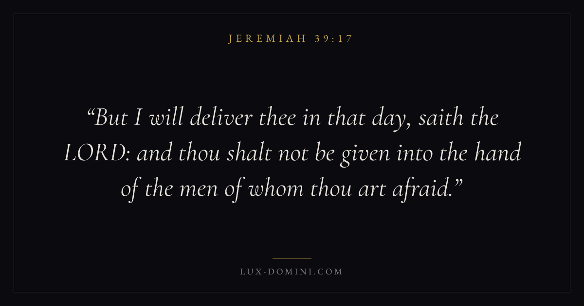 But I will deliver thee in that day, saith the LORD: and thou shalt not be given into the hand of the men of whom thou art afraid.