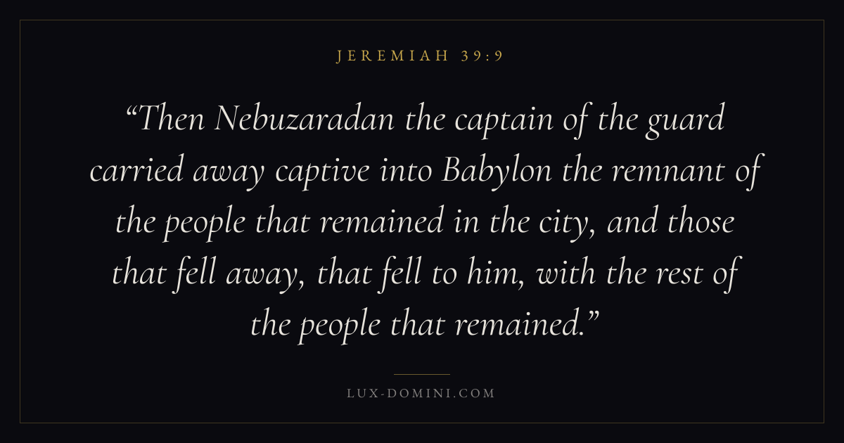 Then Nebuzaradan the captain of the guard carried away captive into Babylon the remnant of the people that remained in the city, and those that fell away, that fell to him, with the rest of the people that remained.