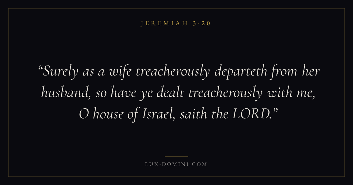 Surely as a wife treacherously departeth from her husband, so have ye dealt treacherously with me, O house of Israel, saith the LORD.