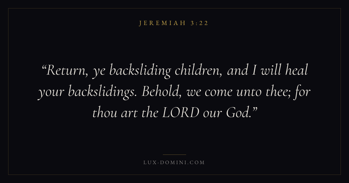 Return, ye backsliding children, and I will heal your backslidings. Behold, we come unto thee; for thou art the LORD our God.
